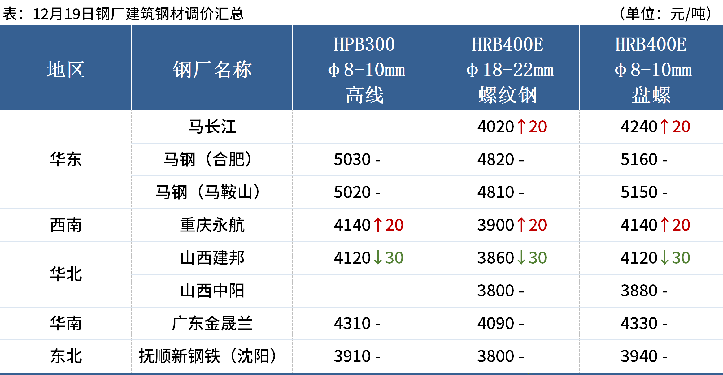 12月19日,全國累計(jì)17家鋼廠發(fā)布調(diào)價(jià)信息,整體調(diào)幅在0-30元/噸。