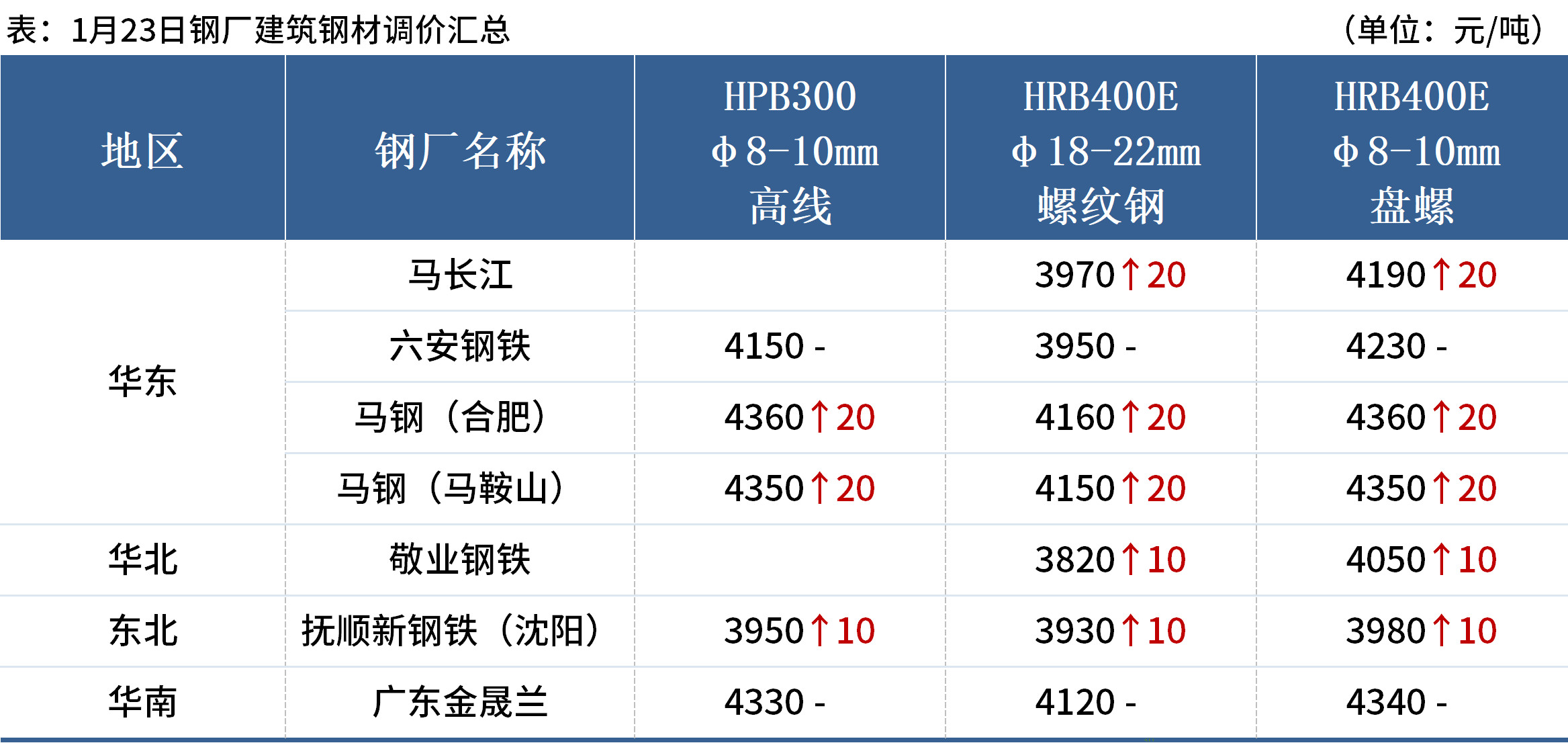 1月23日,全國累計(jì)6家鋼廠發(fā)布調(diào)價(jià)信息,其中4家鋼廠漲價(jià),整體調(diào)幅在0-20元/噸。